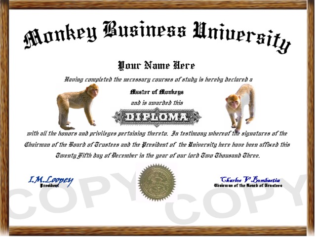 Item # 00053 - Monkey Diploma