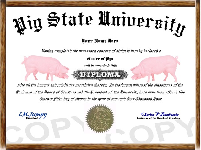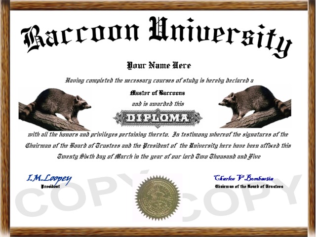 designed, affordable, high quality, custom novelty animal diplomas and degrees.