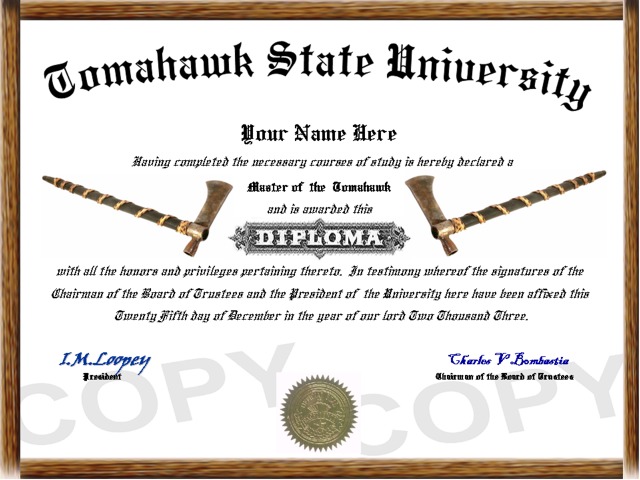 Item # 00145 - Tomahawk Diploma