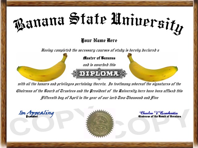 your humorous custom novelty diploma.