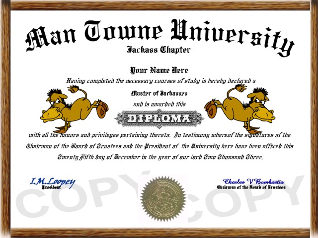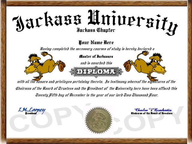 Item # 00186 - Jackass Diploma