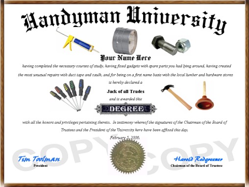 Item # 00607 - Handyman Diploma