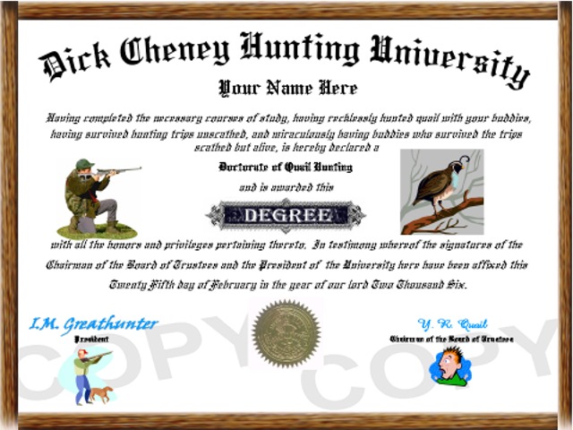 Item # 00590 - Dick Cheney Hunting Diploma
