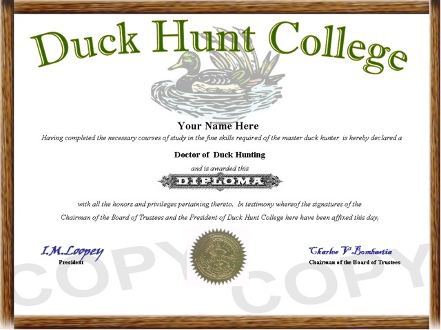 Item # 00316 - Duck Hunting Diploma
