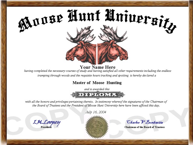 Item # 00320 - Moose Hunting Diploma