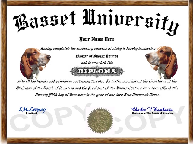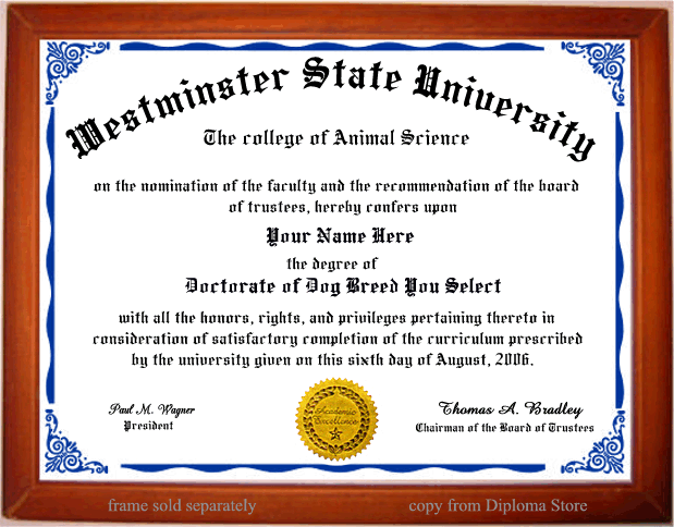 designed, affordable, high quality, custom novelty dog diplomas and degrees