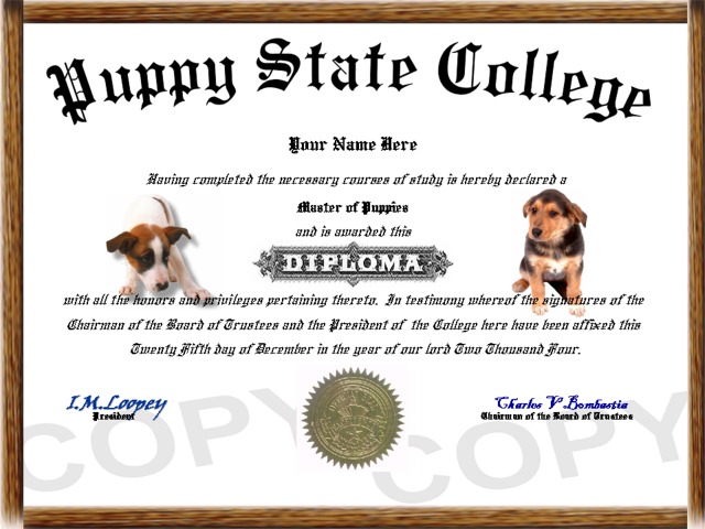 collectible dog diplomas!